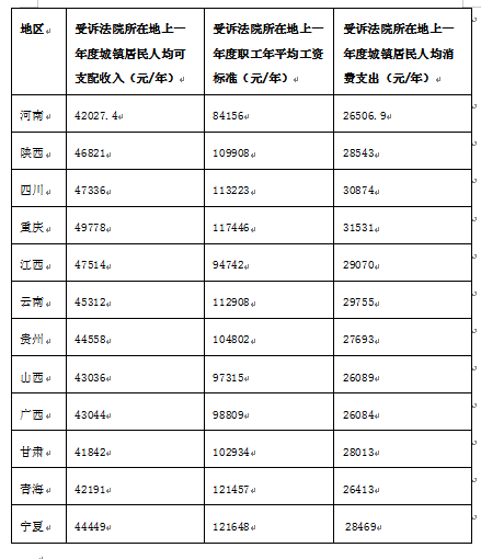 注意:“上一年度”,是指一审法庭辩论终结时的上一统计年度。